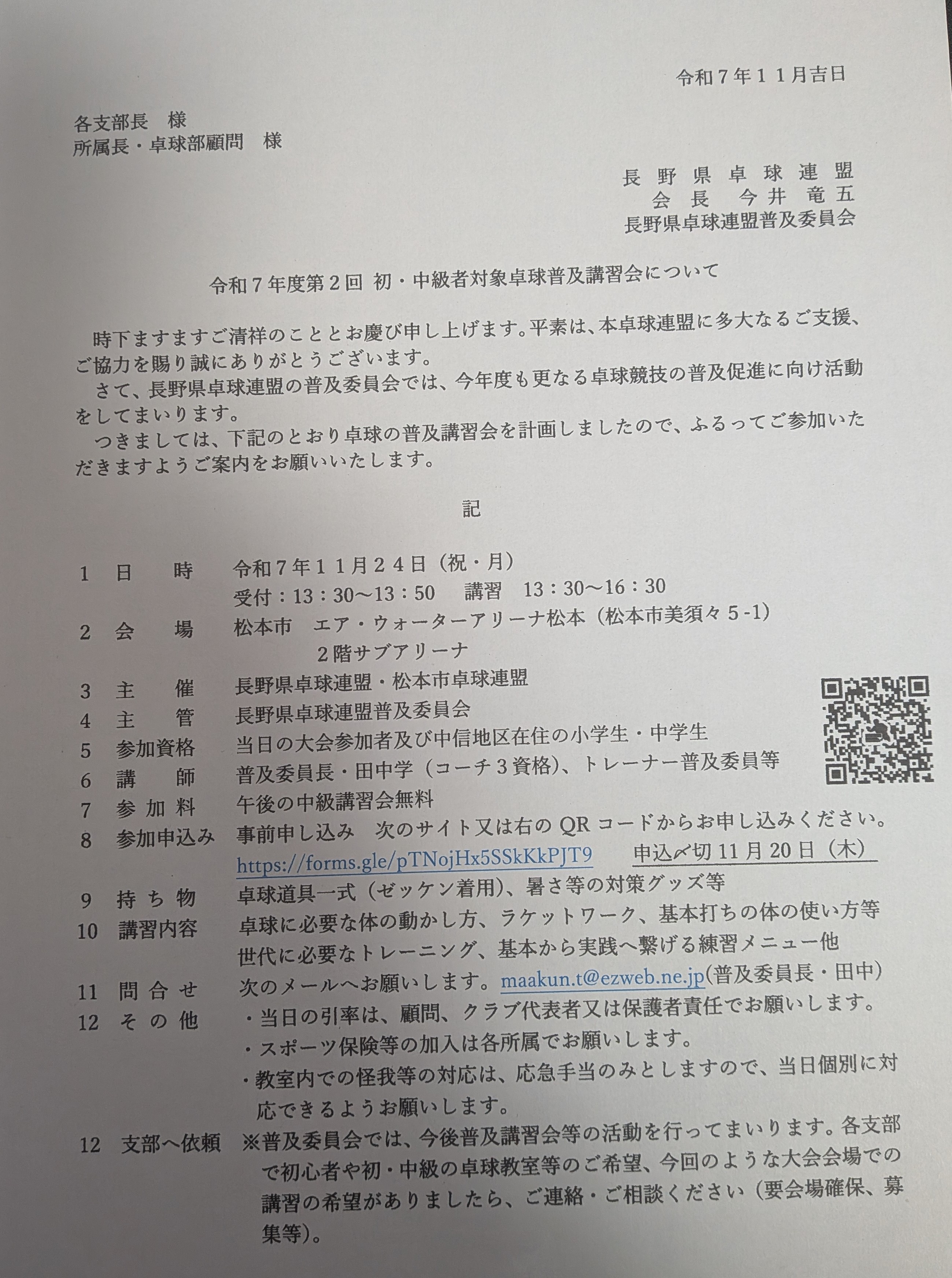 | 令和7年度 第2回 初・中級対象普及講習会 |