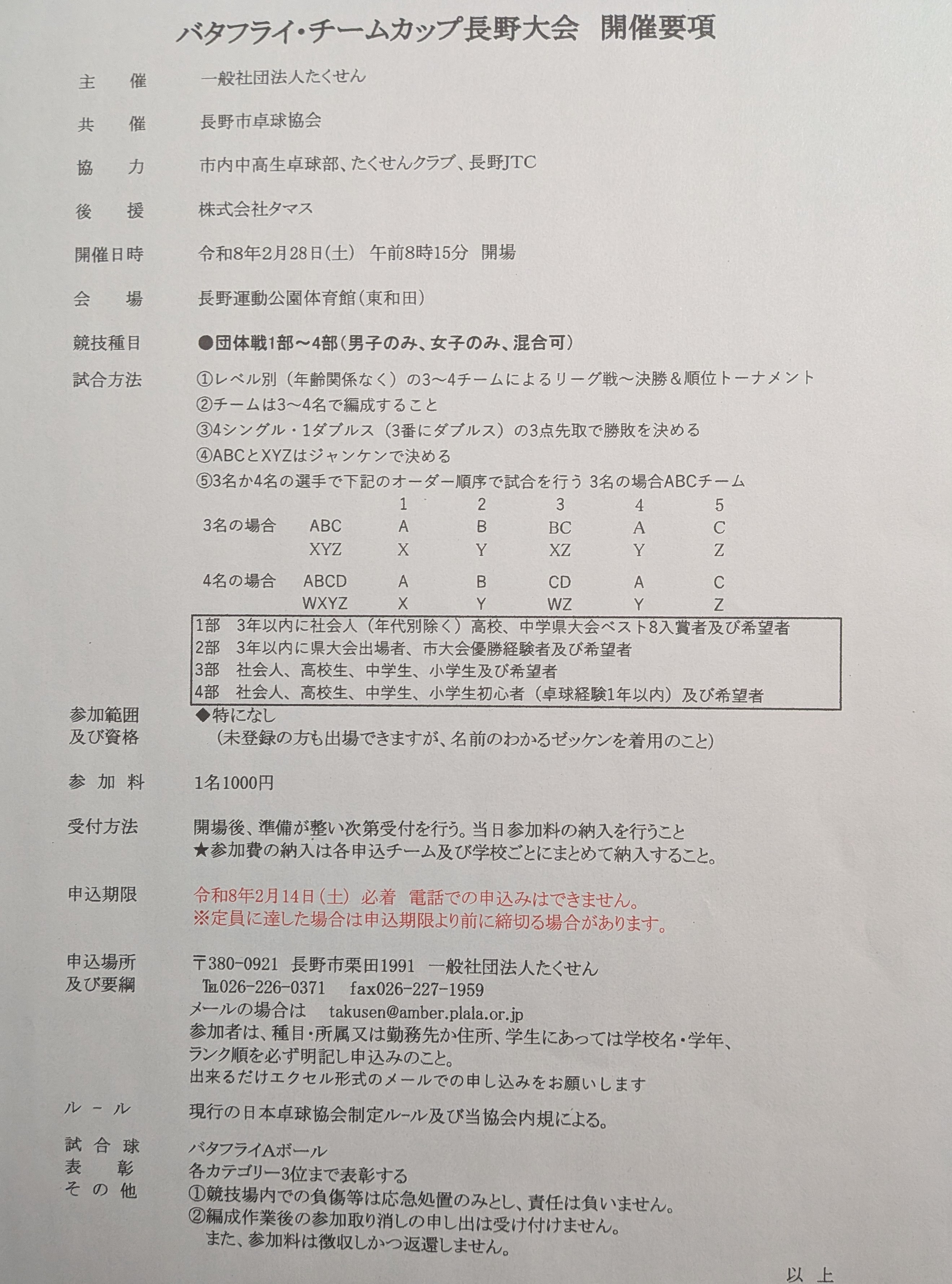 バタフライ・チームカップ長野大会