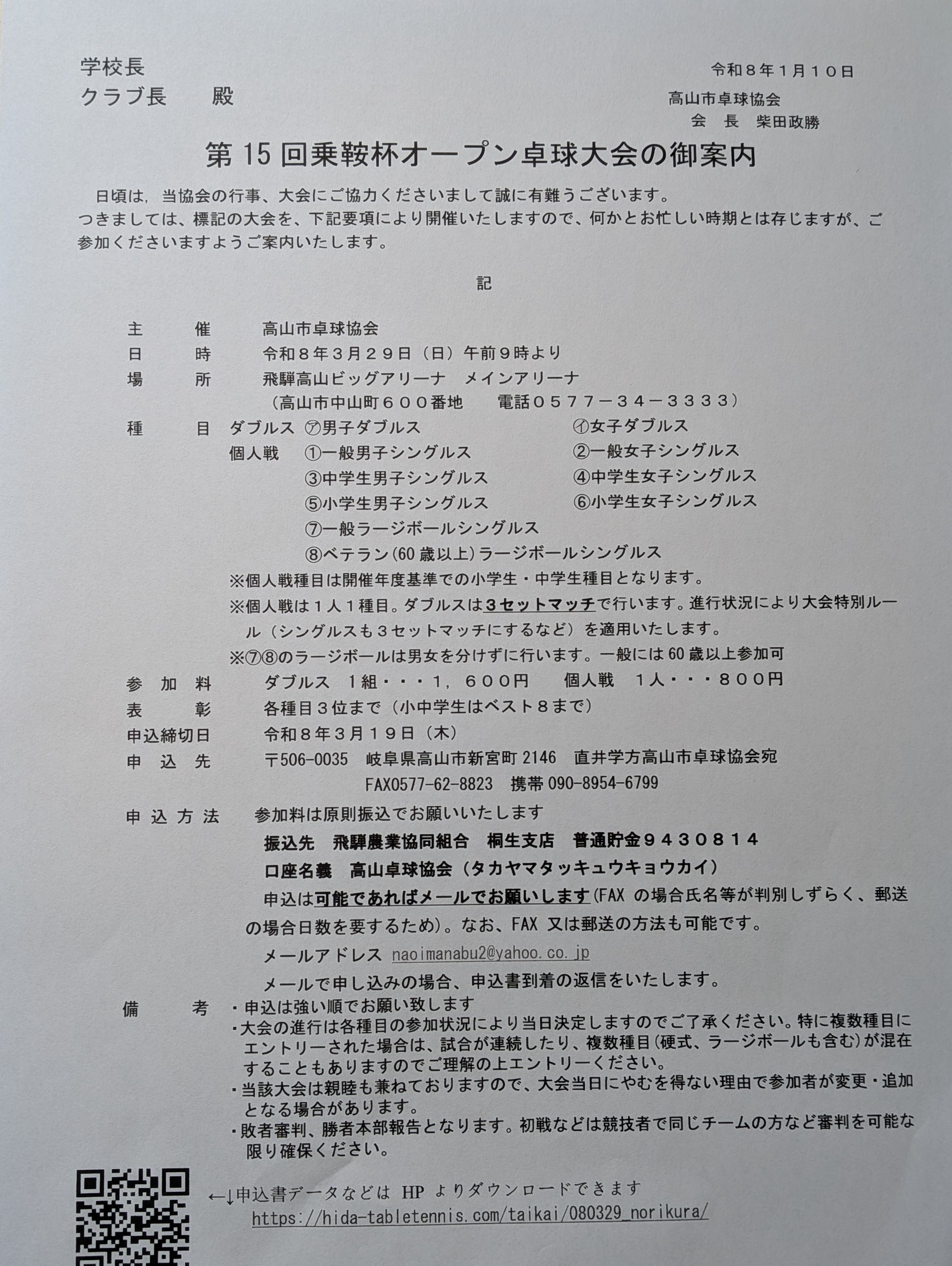 | 13. 参加料:S=800円・D=1,600円(封筒集金) |