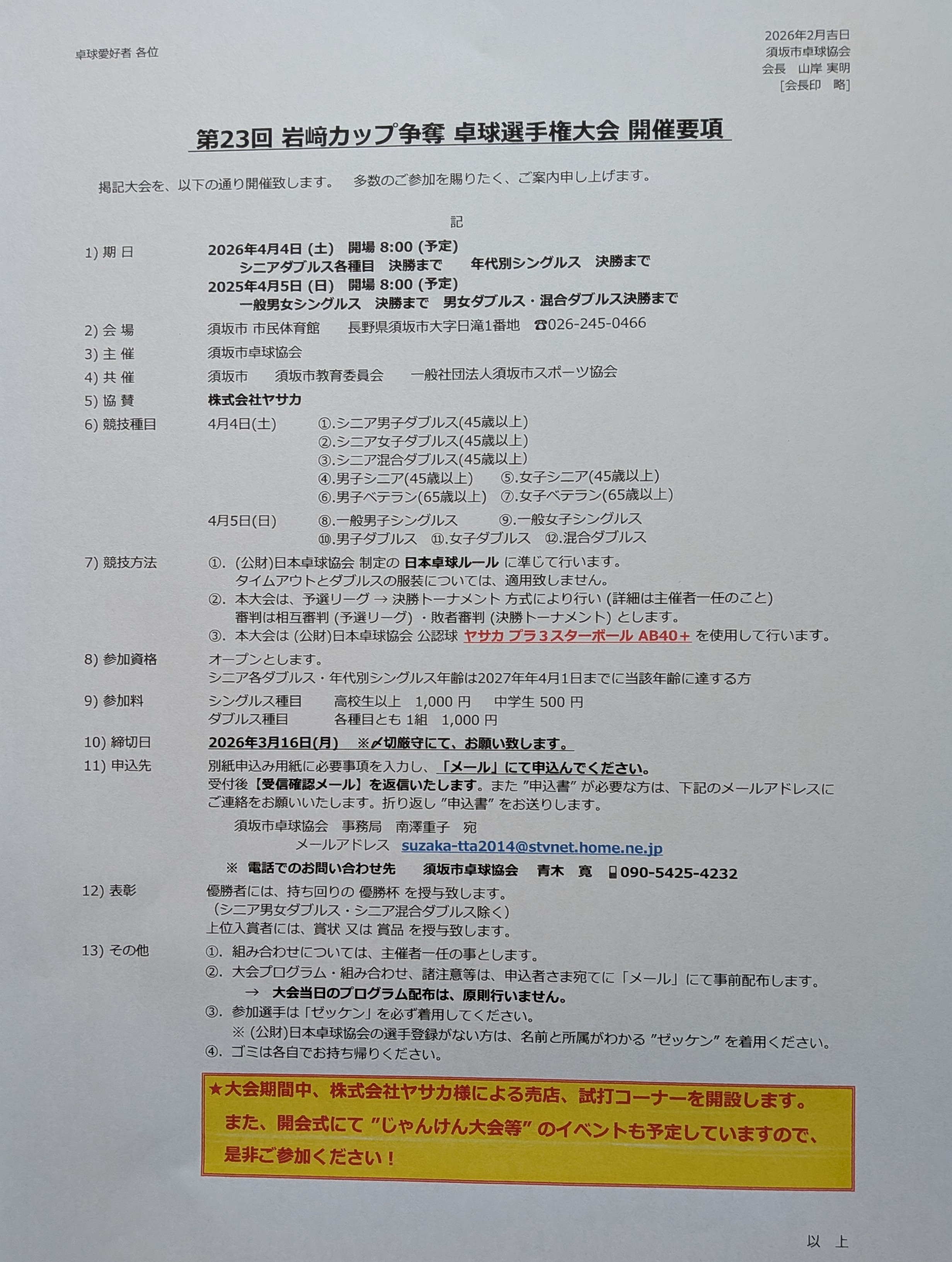 | 6. 参加料:S=1,000円、D=1,000円(現地清算) |