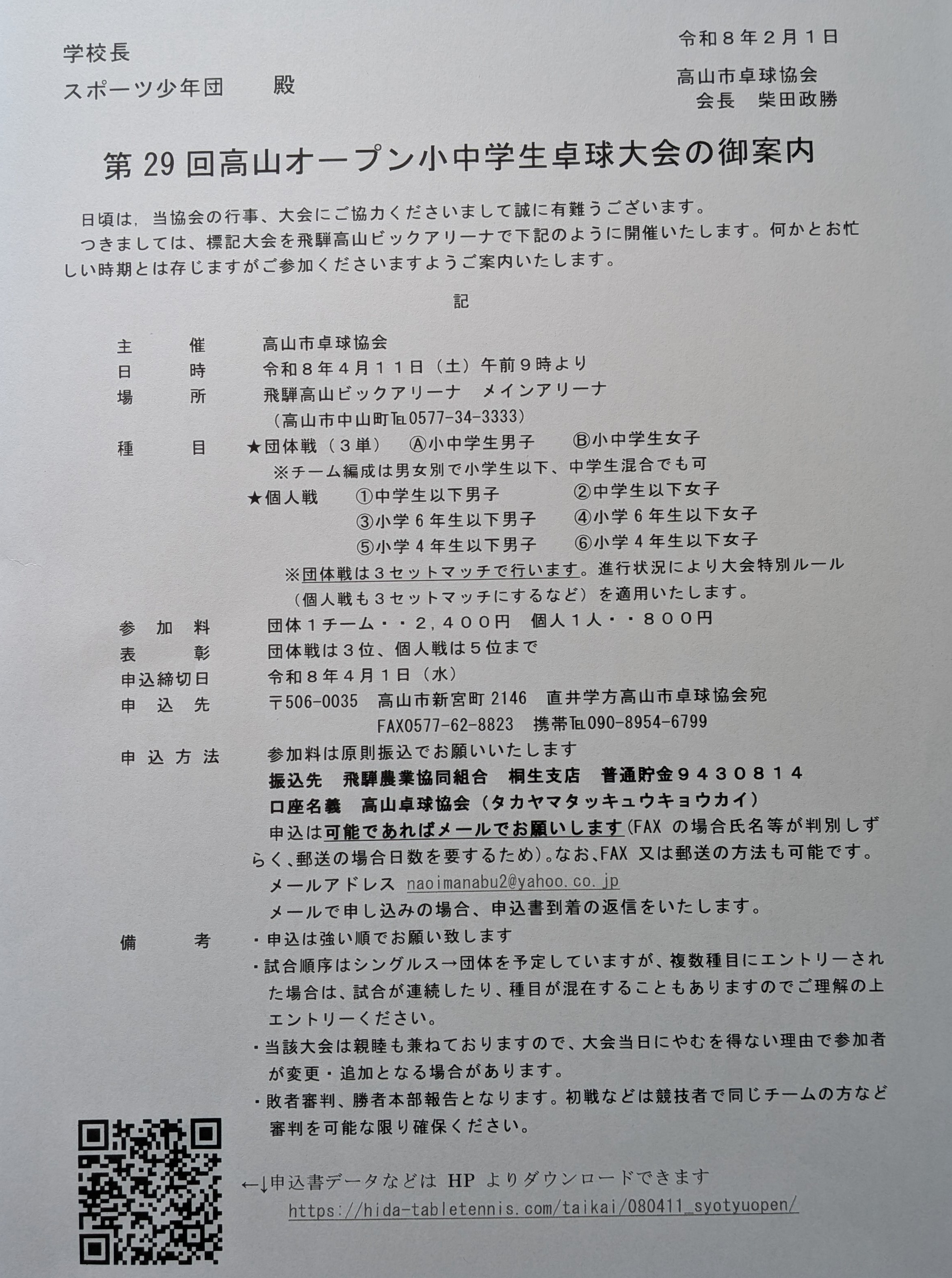 | 12. 参加料:T=2,400円・S=800円(封筒集金) |