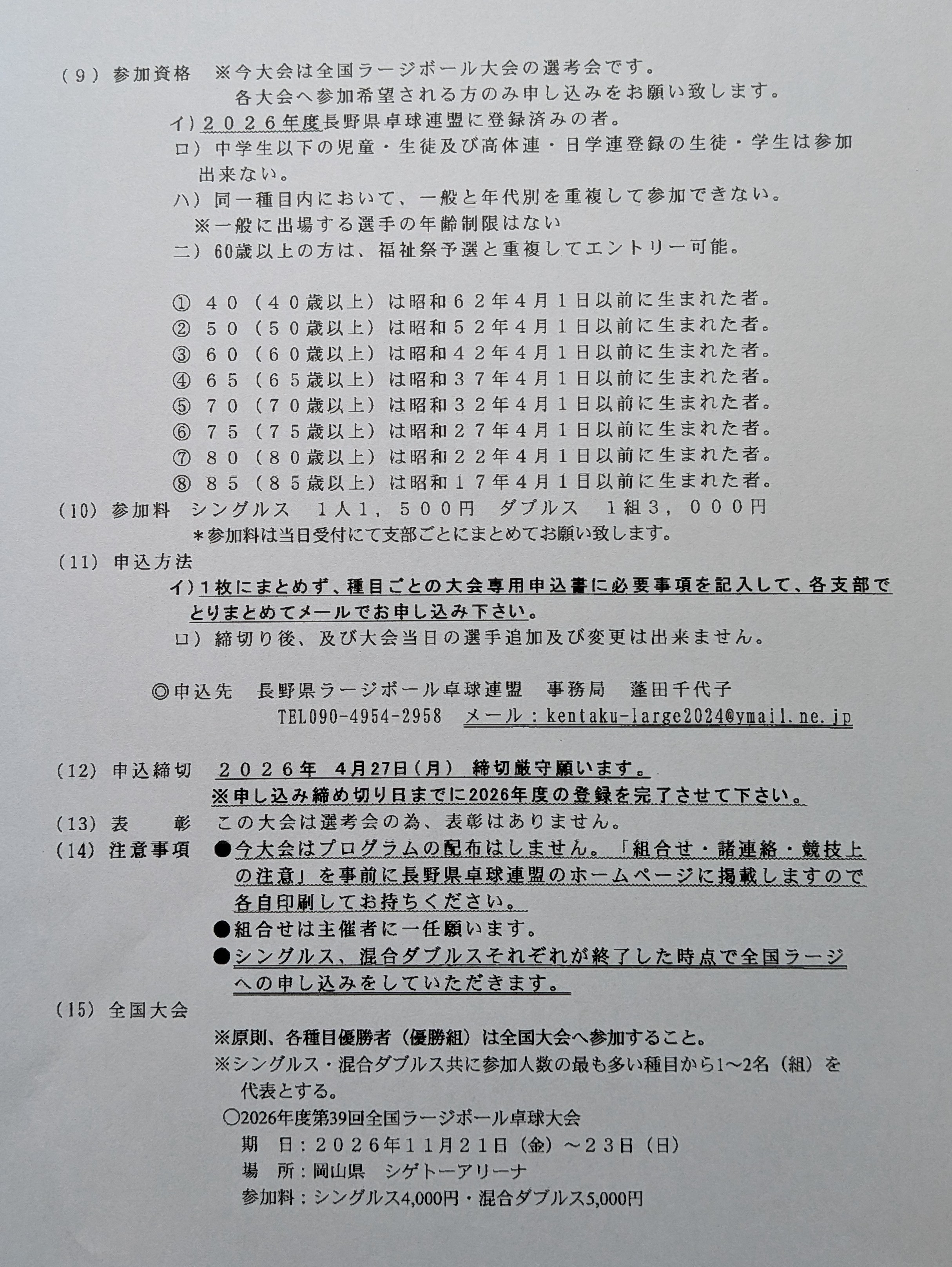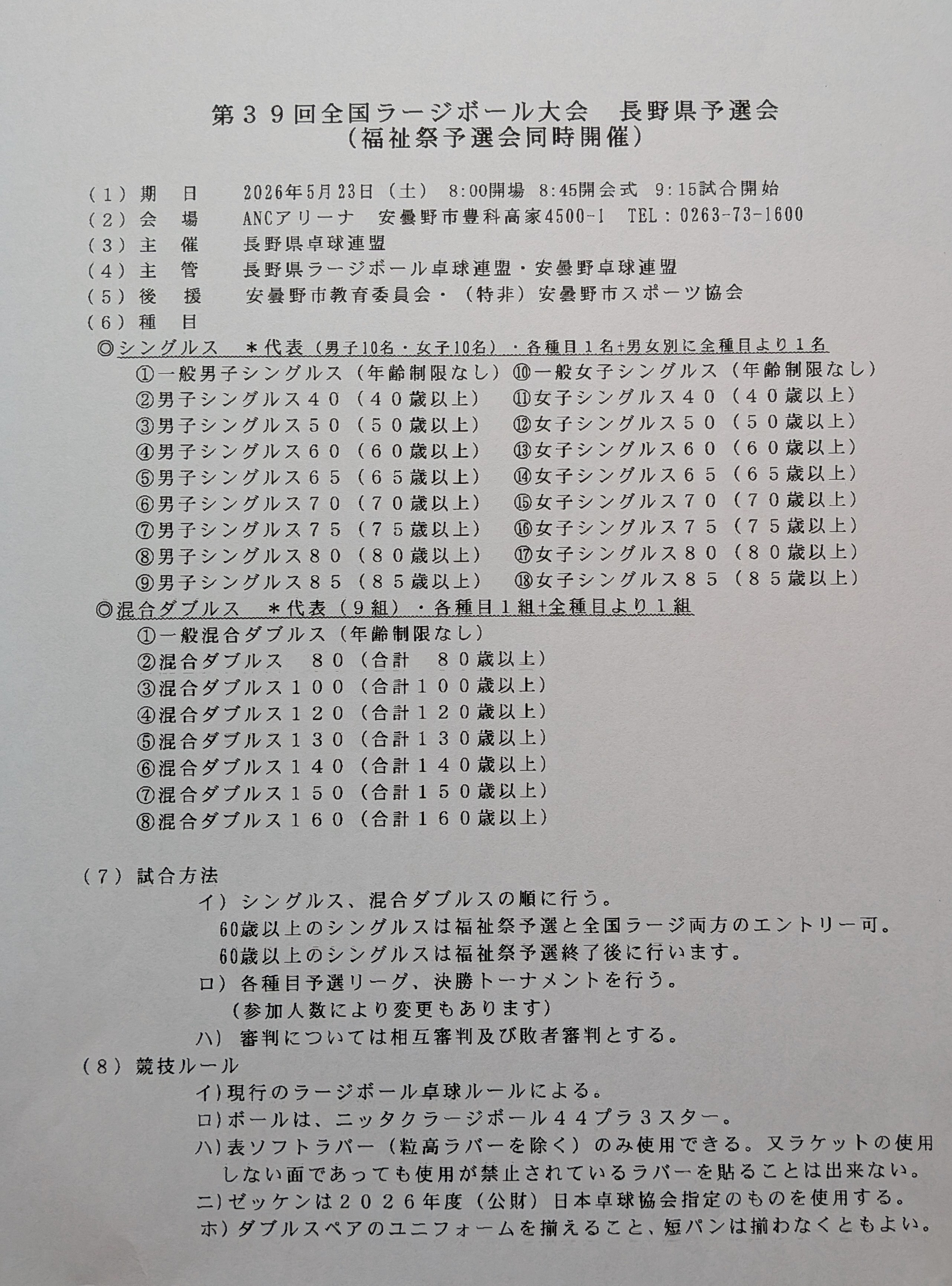 | 第39回 全国ラージボール大会長野県予選会 |