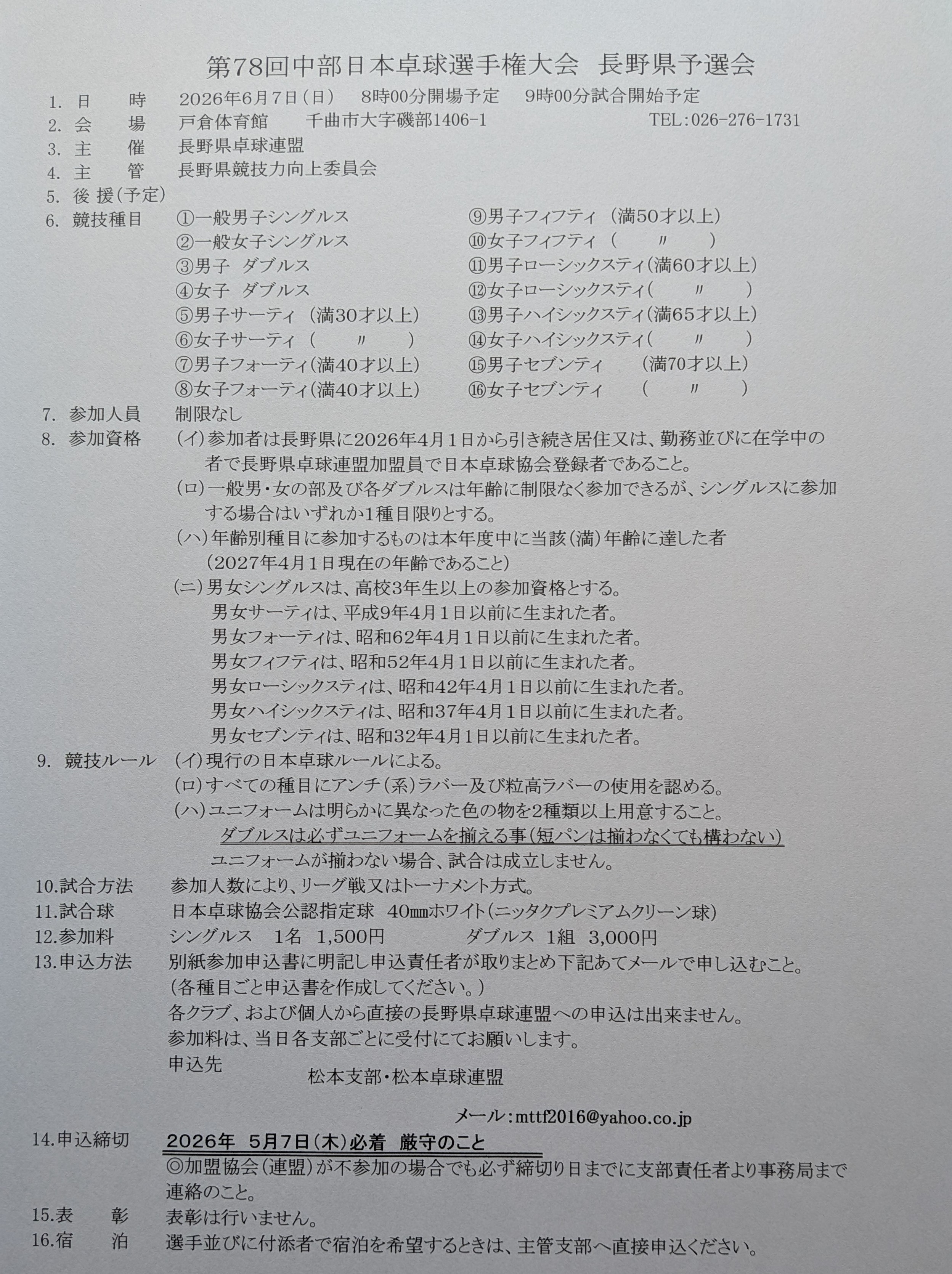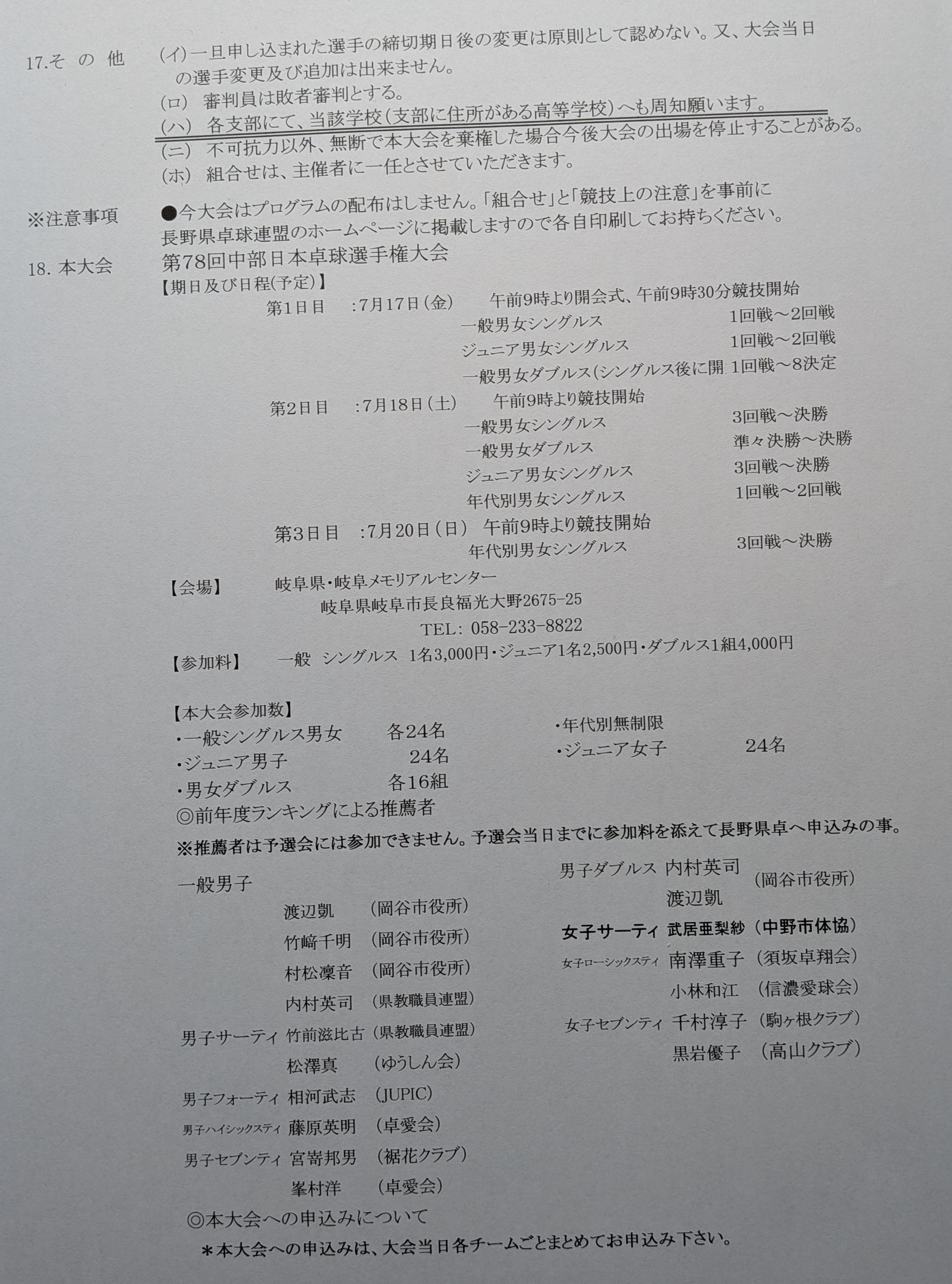 | 第78回 中部日本選手権(一般の部)長野県予選会 |